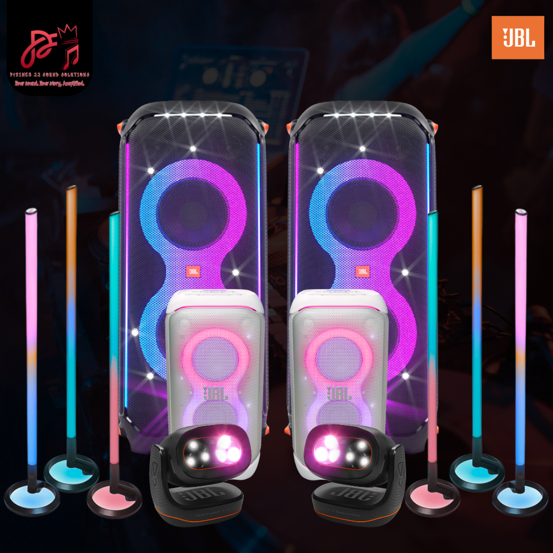 Make your event unforgettable with our curated JBL speaker and lighting bundles. Whether it’s a small house party, a backyard bash, or a large concert, our packages deliver crystal-clear audio and vibrant lighting—all set up and supported by our professional team